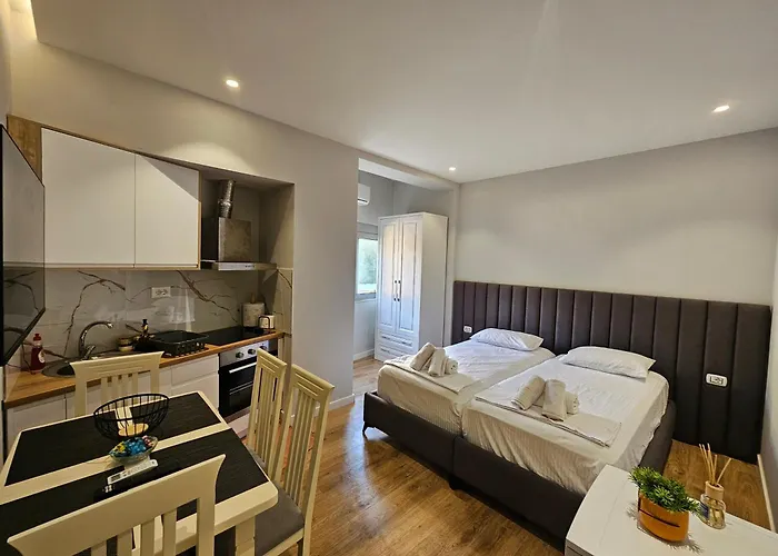 1-Leo"S Apartaments Sarande dysponuje w pełni wyposażoną kuchnią z widokiem na ogród. Apartament oferuje również 1 łazienkę. Do dyspozycji Gości są także zmywarka i prysznic.